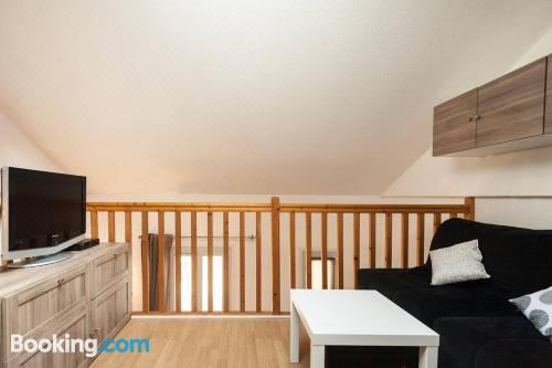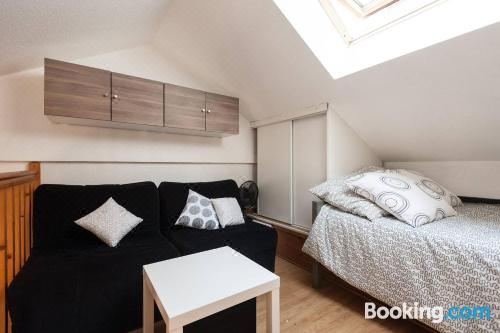 这家公寓配有1间卧室、起居室、带冰箱和咖啡机的设施齐全的厨房以及1间带淋浴设施和吹风机的浴室。这家公寓也提供休息区和1间浴室。